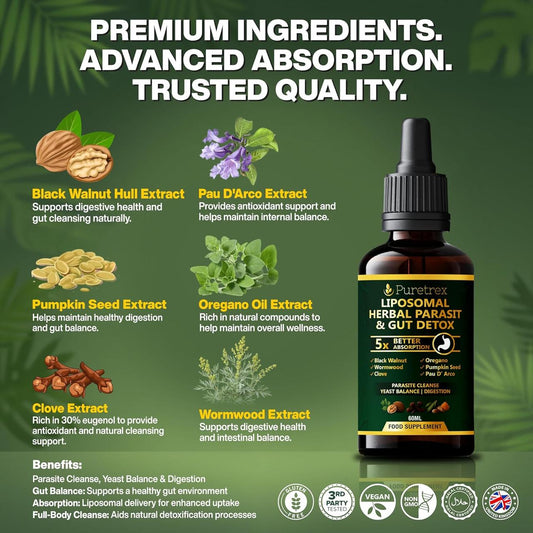 Liposomal Herbal Parasite & Gut Detox with Black Walnut, Wormwood & Oregano Capsules