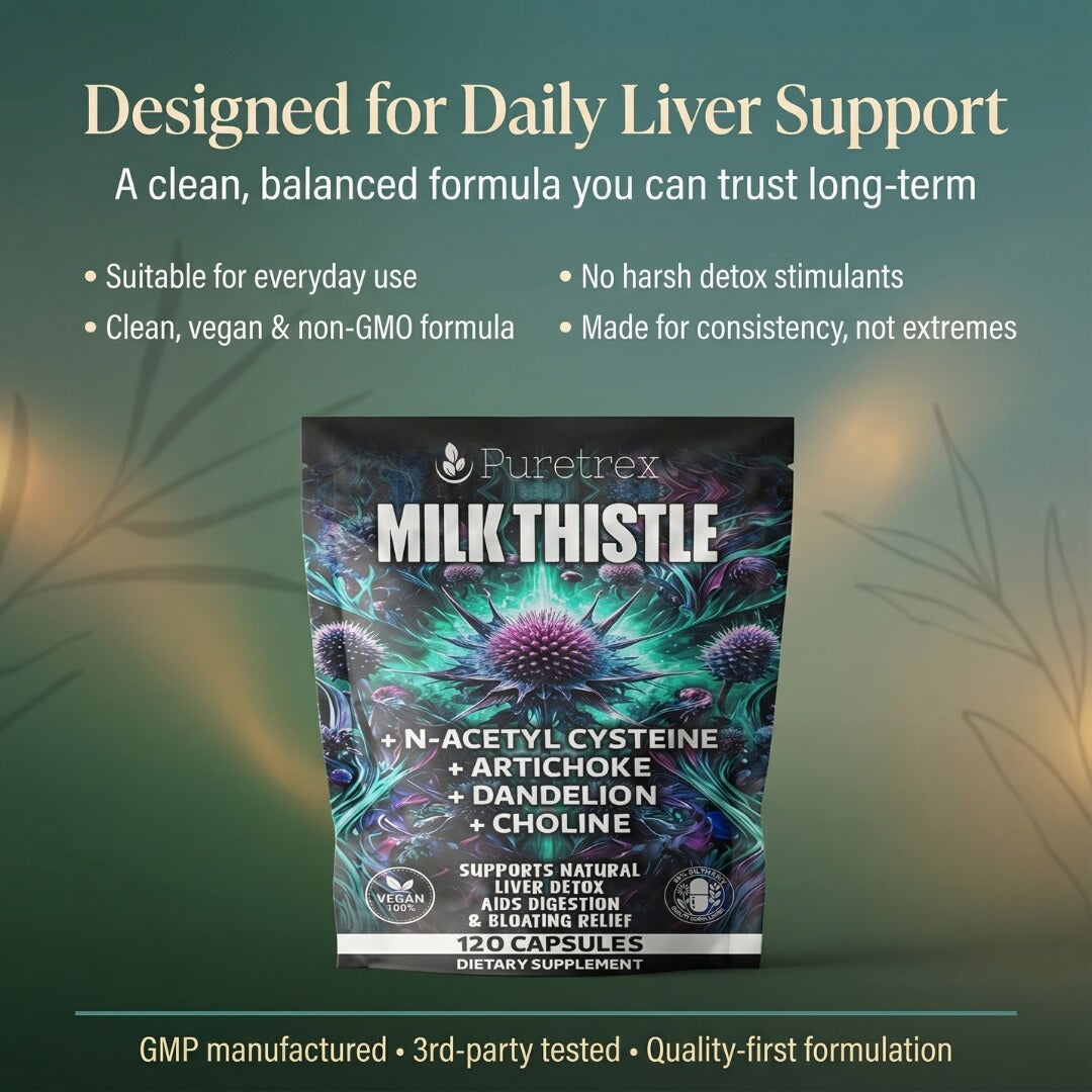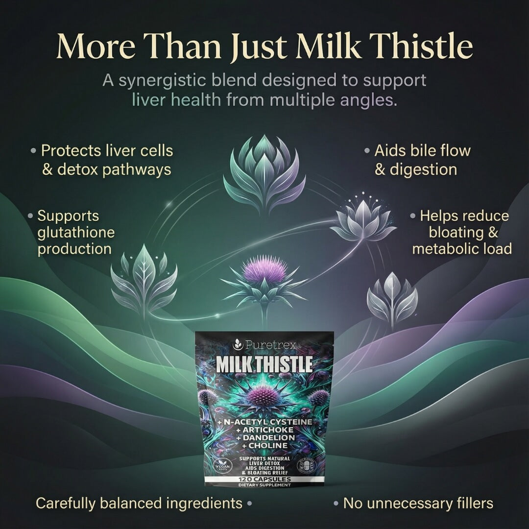 Powerful ingredients like Milk Thistle, N-Acetyl Cysteine (NAC), and Dandelion help detoxify the liver, support digestive health, and reduce bloating - naturally and effectively. Let me know if you’d like more versions or one tailored for mobile!