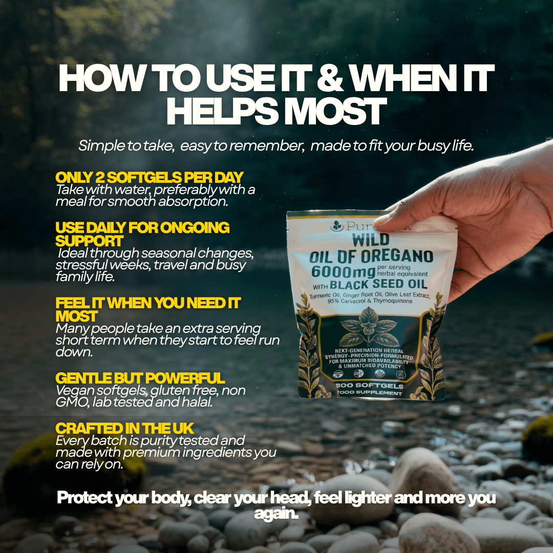 ✔ Supports Immune Health – Organic Wild Mediterranean Oregano Oil (6000mg) helps reinforce the body's natural defenses with high-strength 95%+ Carvacrol for optimal immune support.